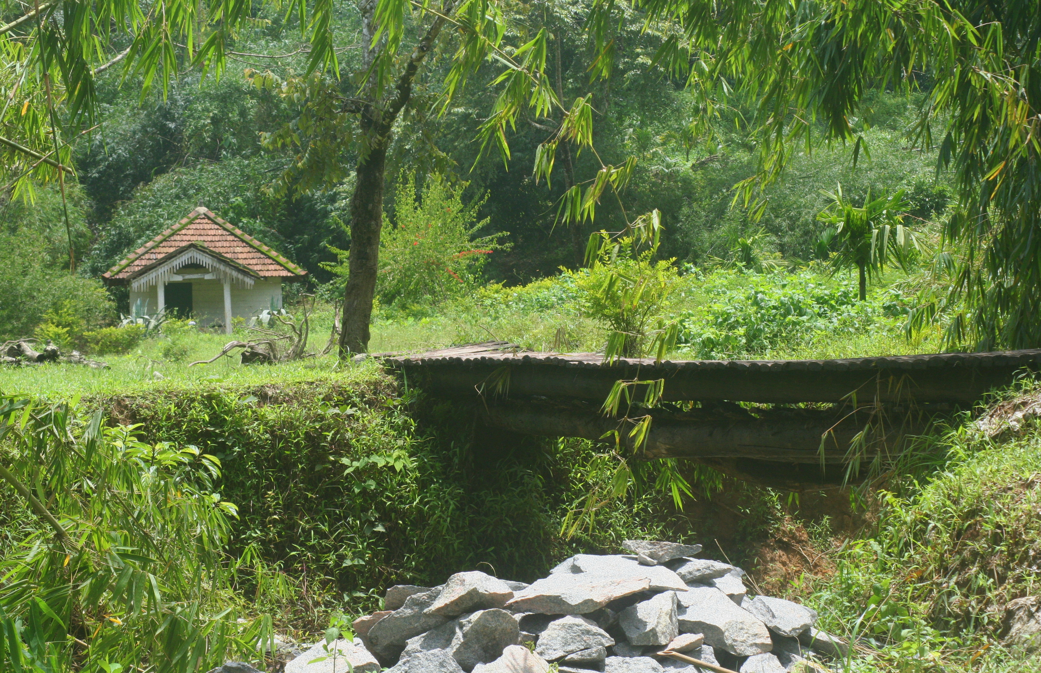 A delightful picnic spot, we spent a few quiet moments there soaking in the serenity of the place. And then Vijay said waterfall! Off we went, crossing the river beyond the pretty little cottage which houses the electricity generating pump house to the cascade.